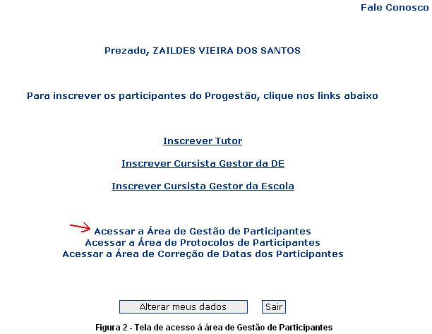A seguir, deve-se selecionar o link "Acessar a Área de Gestão de Participantes", como mostra a Figura 2.