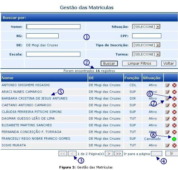 Feito isso, você tem acesso à tela de Gestão das Matrículas, como mostra a Figura 3 a seguir: