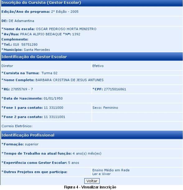 Inscrição do Cursista, na qual esses dados são gravados como histórico