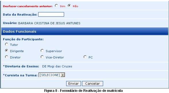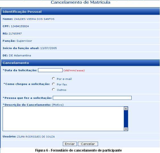 (Figura 3, item 7). Essa função permite o cancelamento da matrícula do