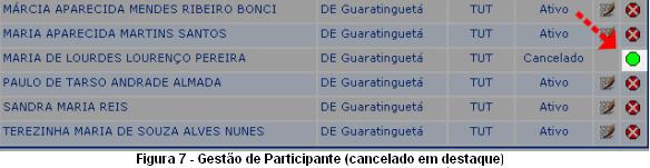 Situação :selecionar. Permite escolher entre participantes Ativos e Cancelados;
